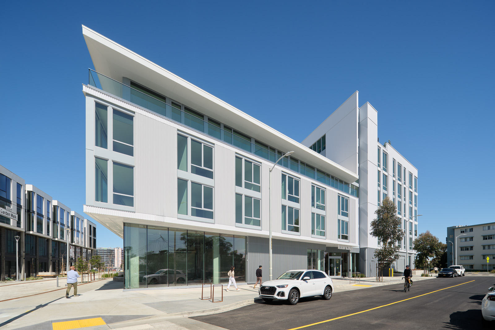 The building’s spacious floor plans allow for flexible living arrangements, and the residences were designed to accommodate home work environments. Raised stoops on the building’s western façade face a new shared public way, an inviting and safe bicycle and pedestrian thoroughfare across the island.