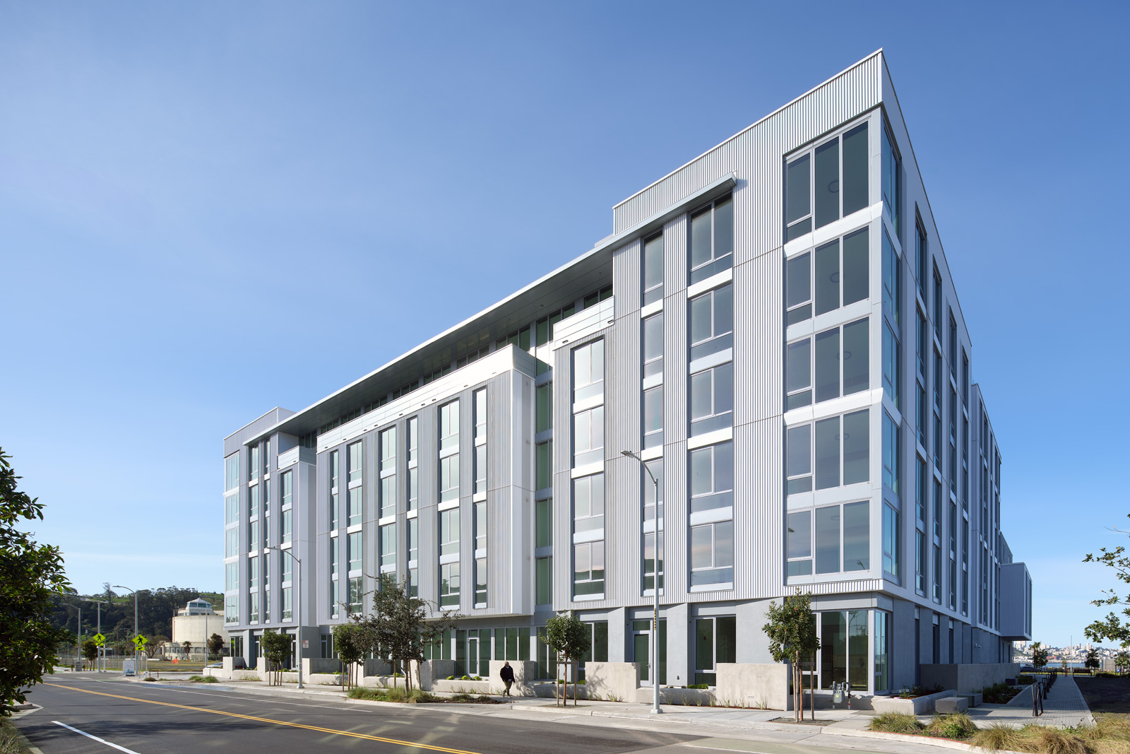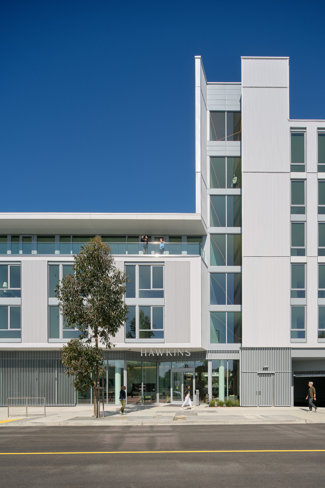 Hawkins, located at Treasure Island Parcel C2.2, is part of the Phase 1 masterplanned redevelopment of Treasure Island. Hawkins was designed to respond to both its unique island setting as well as to fit within the design guidelines established by the redevelopment agency. Through wind and solar studies, the building’s design was carefully articulated to respond to the unique environmental conditions of Treasure Island, maximizing light while offering shelter from the island winds. With careful thought given to the orientation of the cladding pattern, the appearance of the building changes as the sun cascades across the building throughout the day.